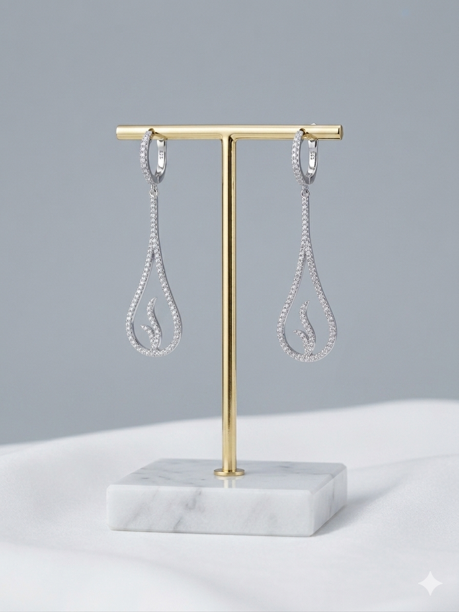 עגיל נופל יוקרתי כסף 925 מצופה זהב 14k