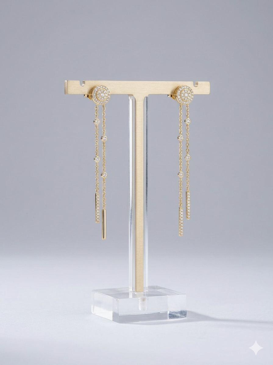עגיל נופל יוקרתי כסף 925 מצופה זהב 14k