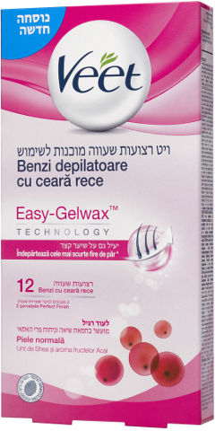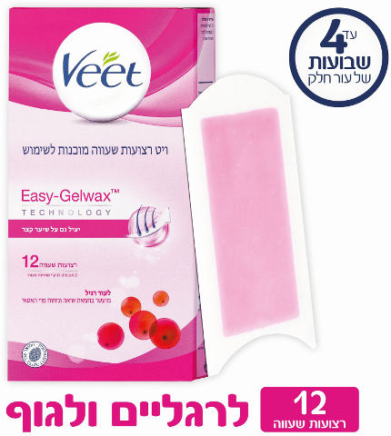 האריזה מכילה 12 רצועות שעווה + 2 מגבונים לחים להסרת שאריות שעווה.